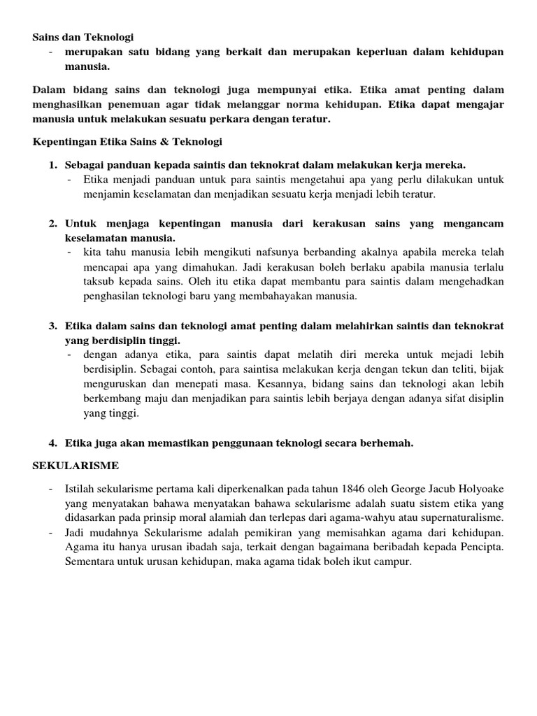 Contoh Karangan Kepentingan Sains Dan Teknologi Wo Contoh