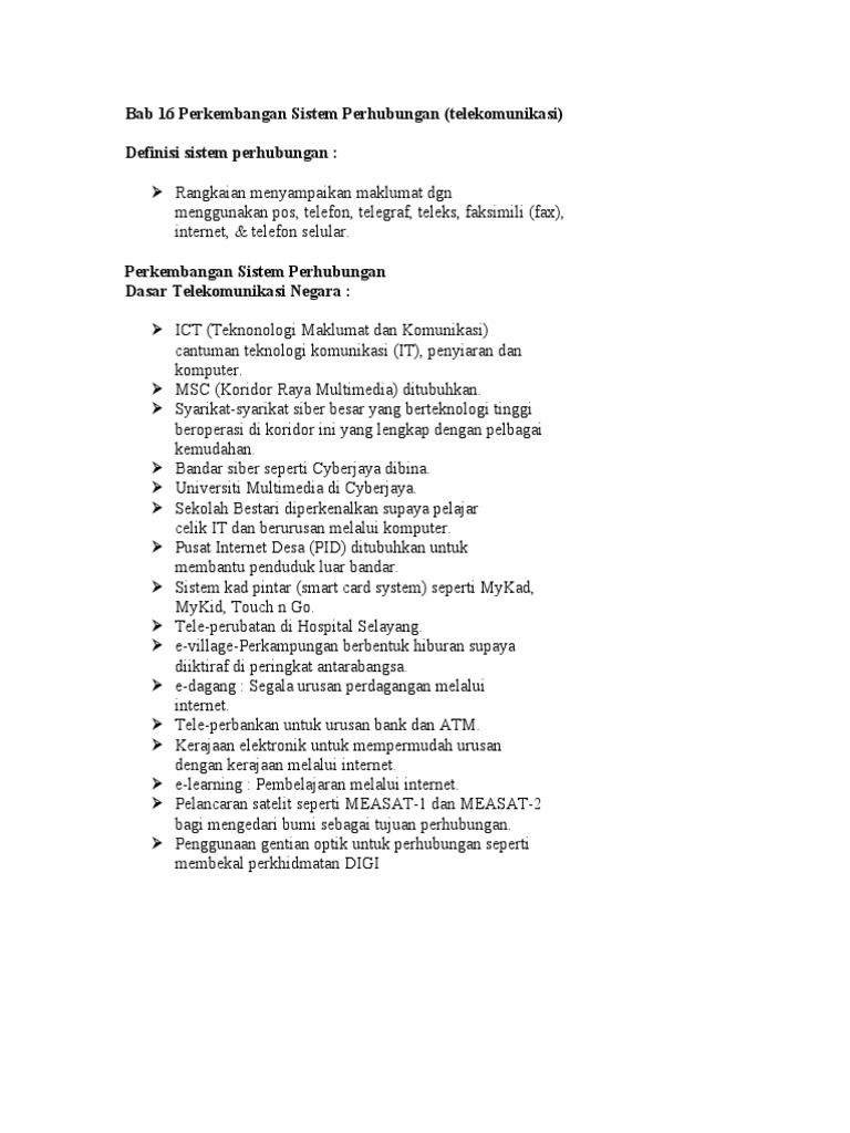 Geografi Tingkatan 2 Bab 6 Komunikasi Di Malaysia