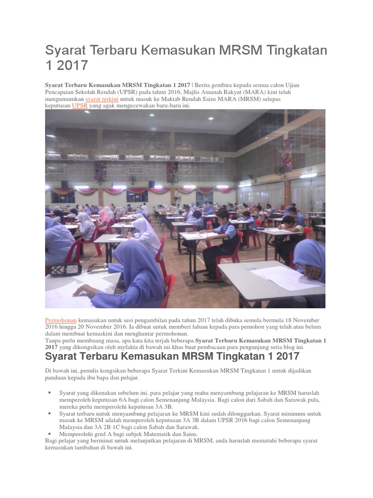 Syarat Terbaru Kemasukan Mrsm Tingkatan 1 2017