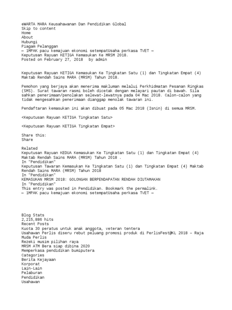 Keputusan Kemasukan Ke Mrsm 2017 Ewarta Mara