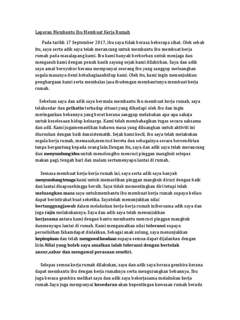 Nilai berkaitan dengan perkembangan diri 20. 33105847 kerja amal pendidikan m bidang perkembangan diri. Karangan 1 kerja amal 1. Membantu ibu membuat kerja rumah tindakan ini dapat meringankan beban ibu sebagai anggota keluarga saya telah melaksanakan tanggungjawab ini untuk mengemas bilik tidur sendiri saya juga memberikan kerjasama kepada anggota keluarga supaya menjaga keamanan sebelum bermula mengemas bilik tidur saya.