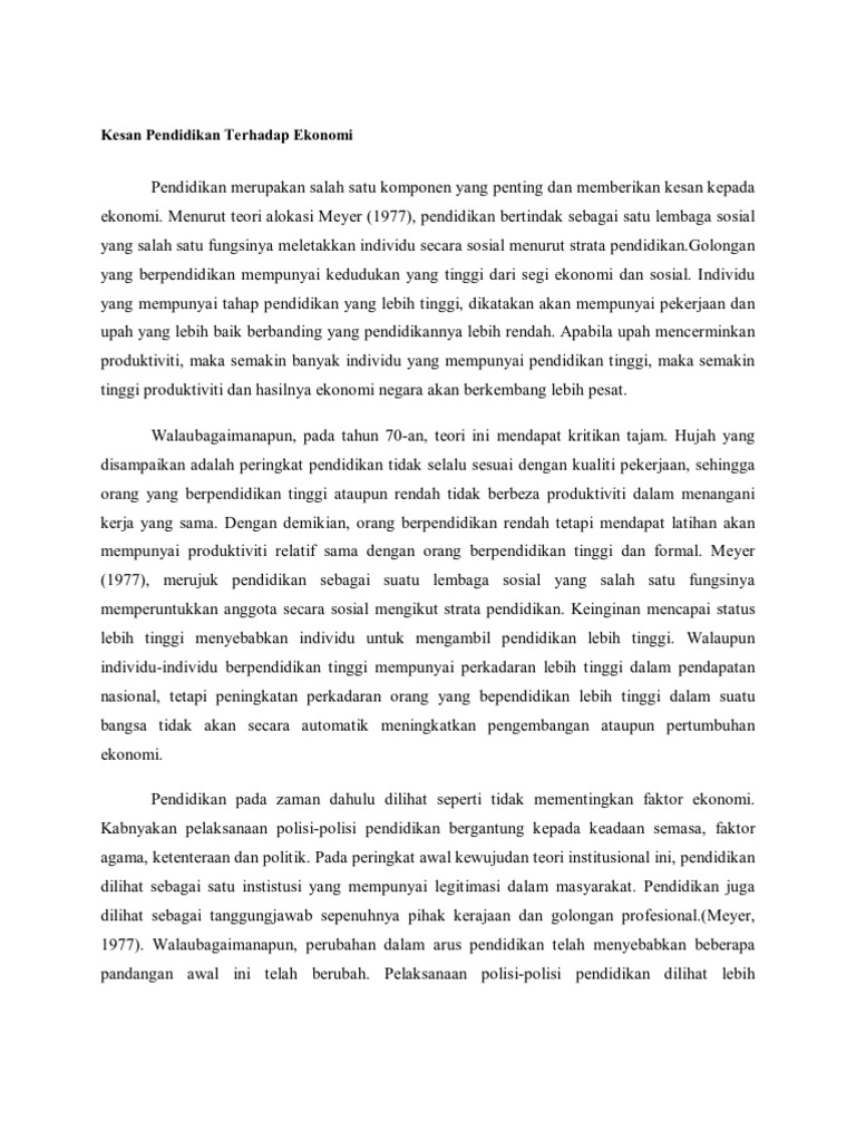 Kesan Pendidikan Terhadap Ekonomi