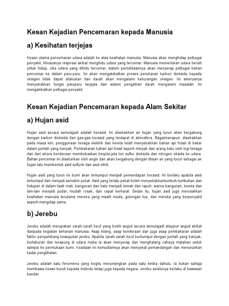 Menerokai Dunia Sains Kesan Pencemaran Udara Kepada Alam Sekitar Dan Manusia