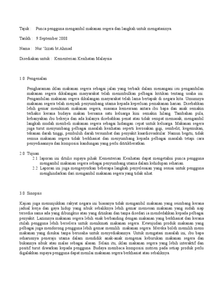 Kesan Pengambilan Makanan Ringan Pdf Document