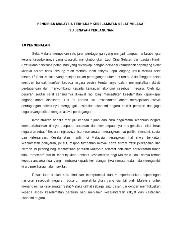 Pendirian Malaysia Berkaitan Keselamatan Selat Melaka Docx