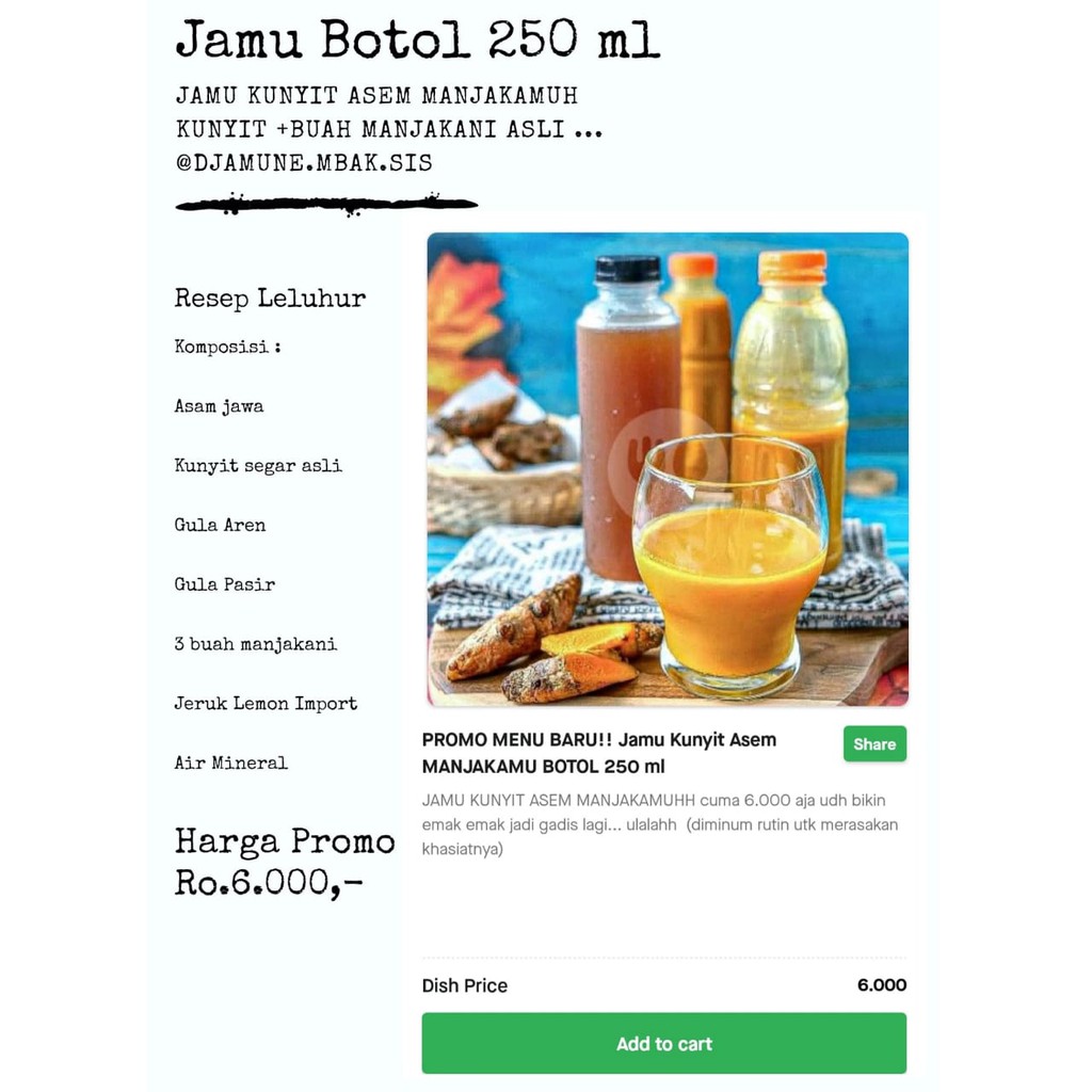 Jual Jamu Kunyit Asem Sirih Manjakani Manis 250ml Kota Bandung Solusimart Bandung Tokopedia