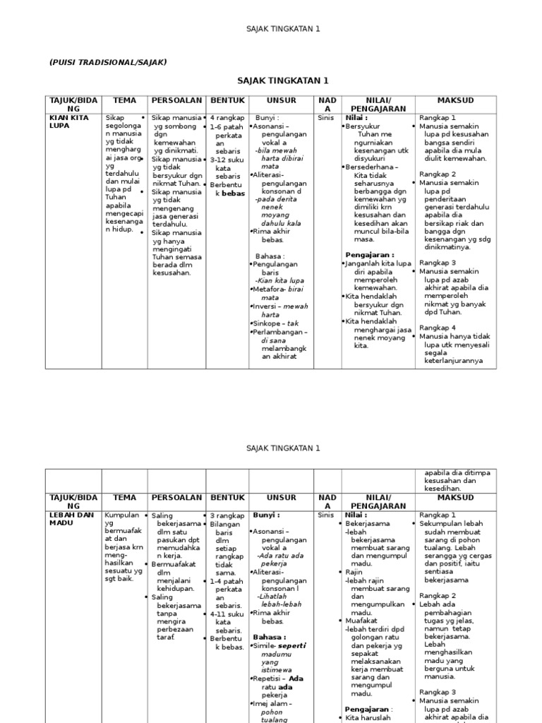 Nota Sajak Tingkatan 1