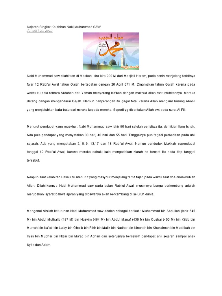 Doc Sejarah Singkat Kelahiran Nabi Muhammad Saw Zainuddin Udin Academia Edu