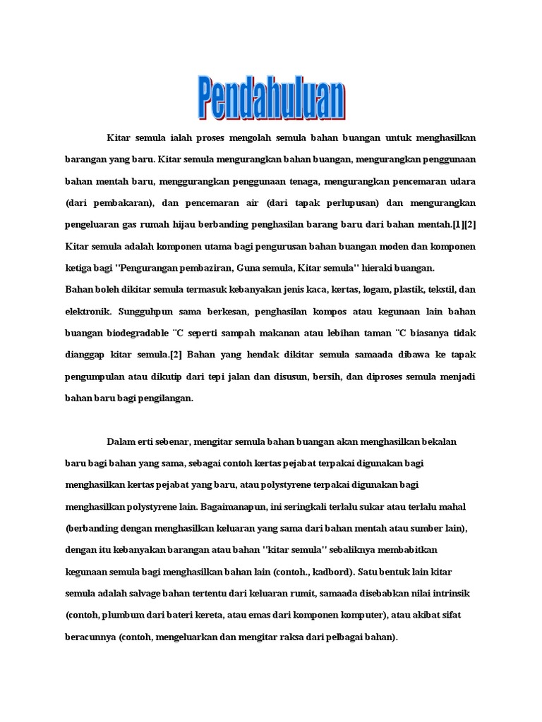 Kitar Semula Ialah Proses Mengolah Semula Bahan Buangan Untuk Menghasilkan Barangan Yang Baru