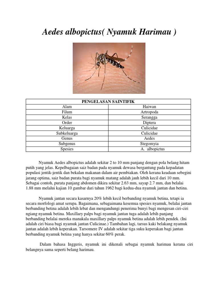 Nyamuk Aedes Pk Tahun 3 Docx Document