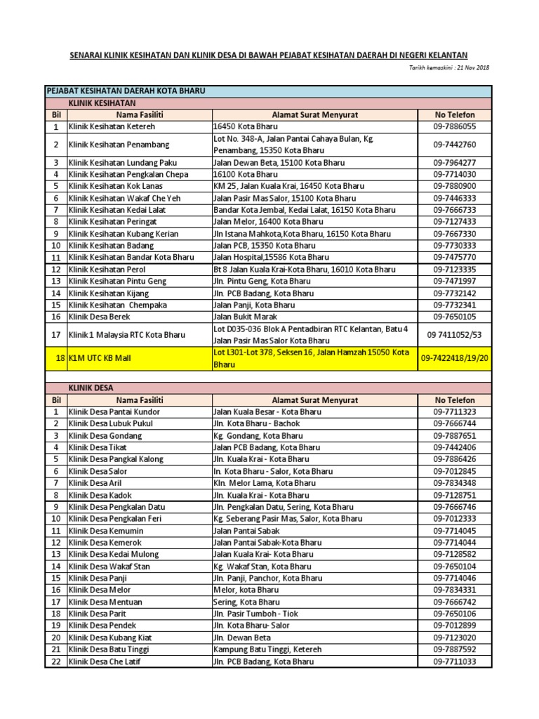 Senarai Klinik Kesihatan Dan Klinik Desa Di Bil Nama Klinik No Lot Nama Jalan Bandar Poskod Mukim Daerah Ketereh 16400 Dusun Rendah Kota Senarai Klinik Kesihatan Dan Klinik Pdf Document