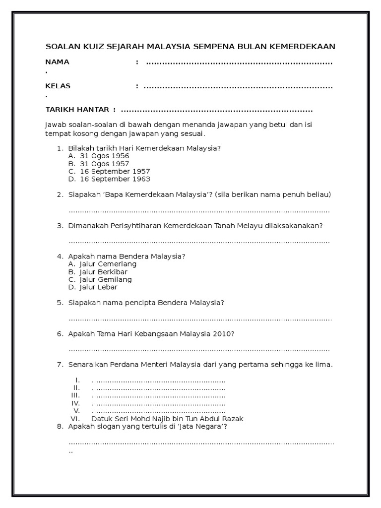 Contoh Soalan Kuiz Kemerdekaan Dan Jawapan Selangor L