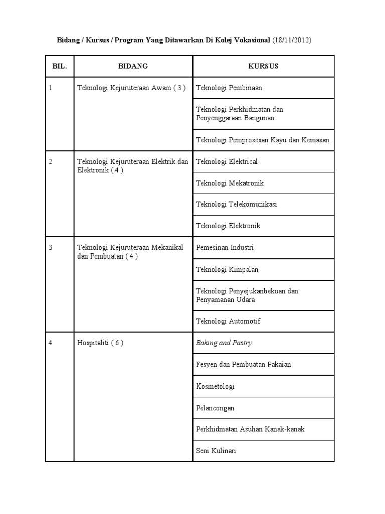 Kursus Yang Ditawarkan Di Kolej Vokasional 2018