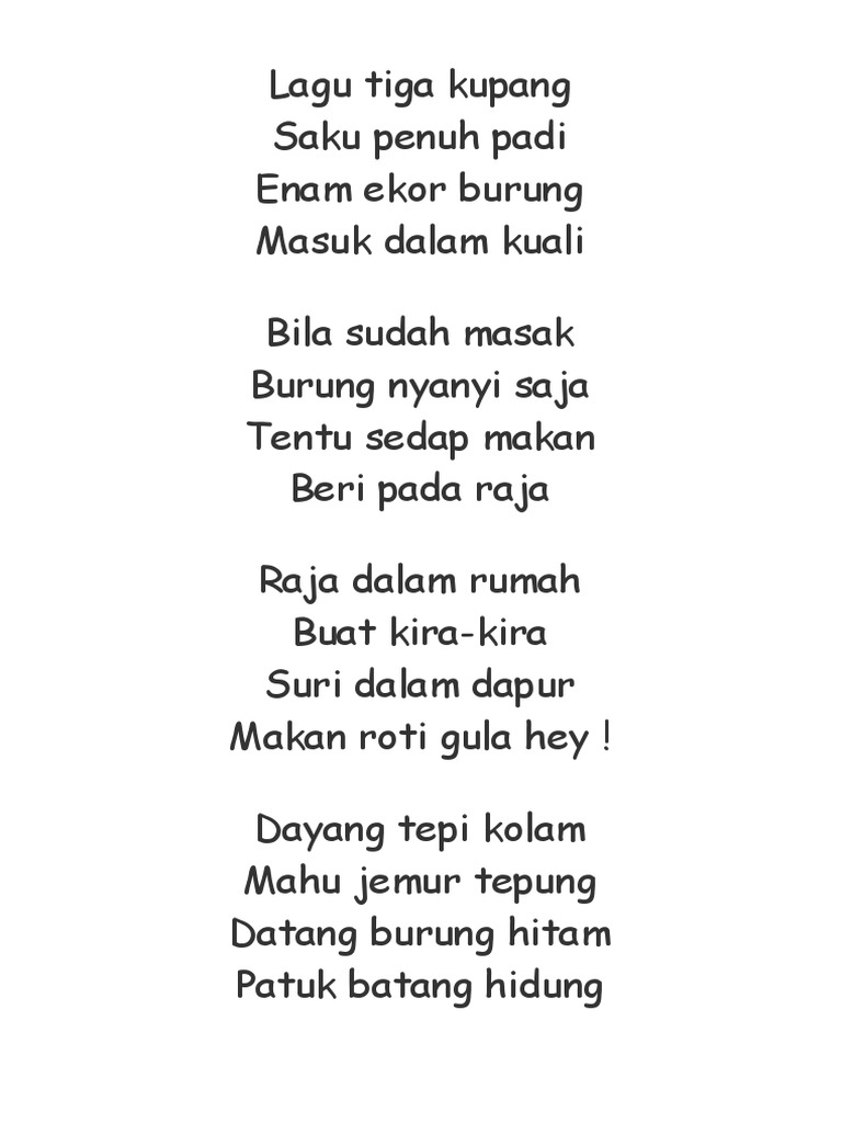 Lagu Tiga Kupang Lirik Lagu Kanak Kanak