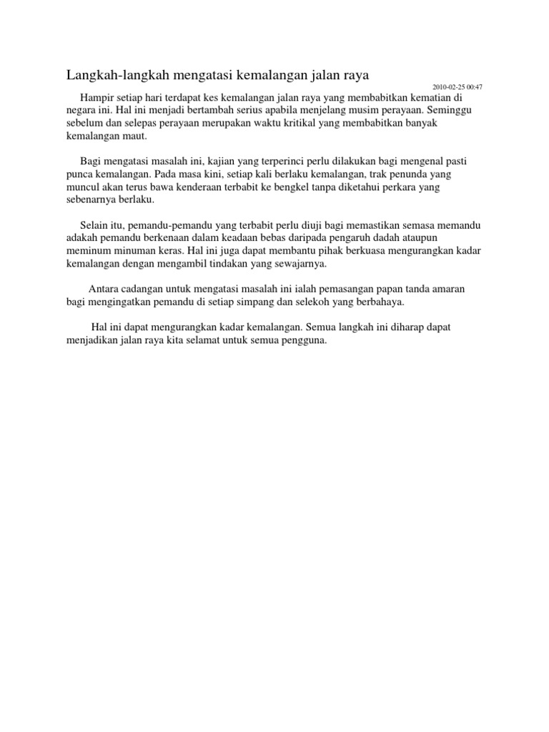 Karangan Docx Langkah Langkah Mengurangkan Kemalangan Jalan Raya Langkah Yang Boleh Dilakukan Untuk Mengurangkan Kemalangan Jalan Raya Adalah Dengan Course Hero