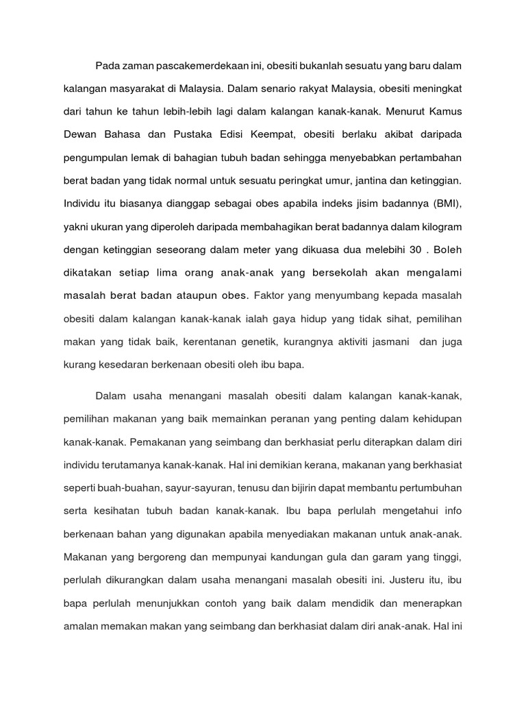 Contoh Karangan Obesiti Contoh Jari