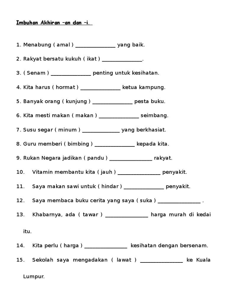 Latihan Imbuhan Akhiran An Dan I Tahun 1 Tahun 2 Mobile
