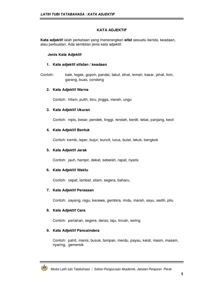 Contoh Ayat Kata Adjektif Bentuk Materi Pelajaran 1