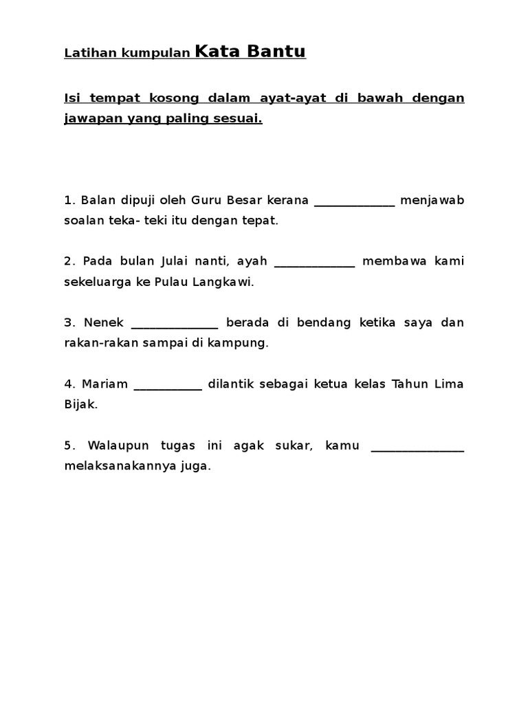 Latihan Kata Bantu