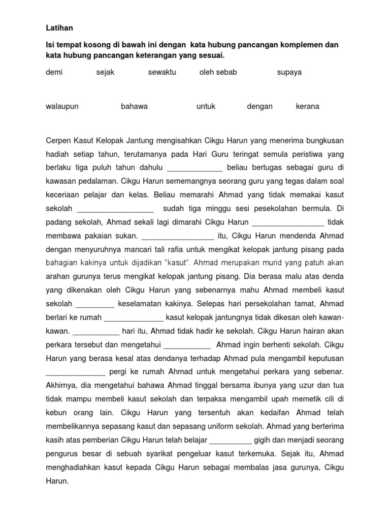 Latihan Kata Hubung Pancangan Keterangan Eljqevmjwx41