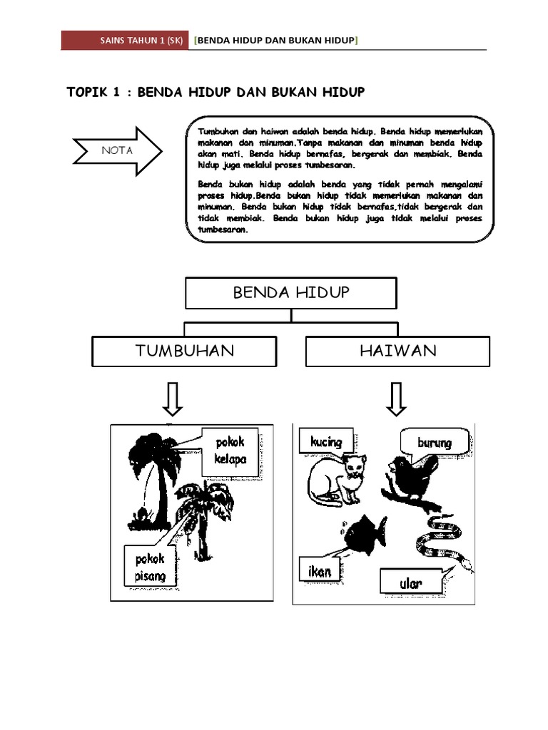 Latihan Sains Tahun 1 Benda Hidup Dan Bukan Hidup