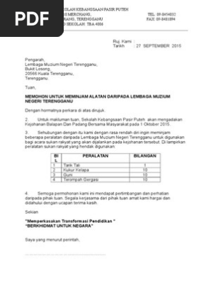 Surat Pinjam Peralatan Di Muzium 2015