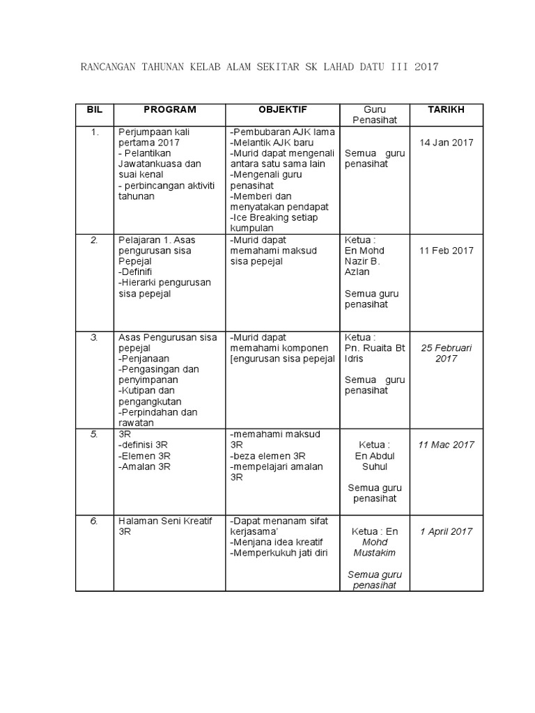 Koleksi Rancangan Aktiviti Tahunan Persatuan Dan Kelab Sumber Pendidikan