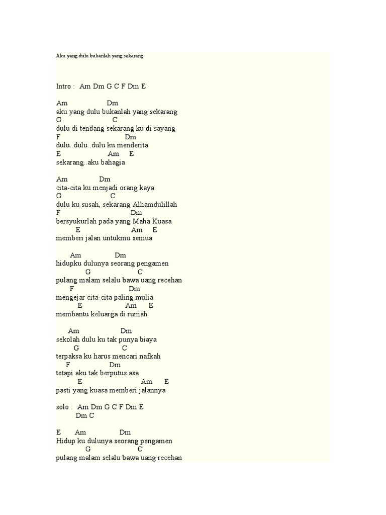 Aku Yang Dulu Bukanlah Yang Sekarang Lirik Chord