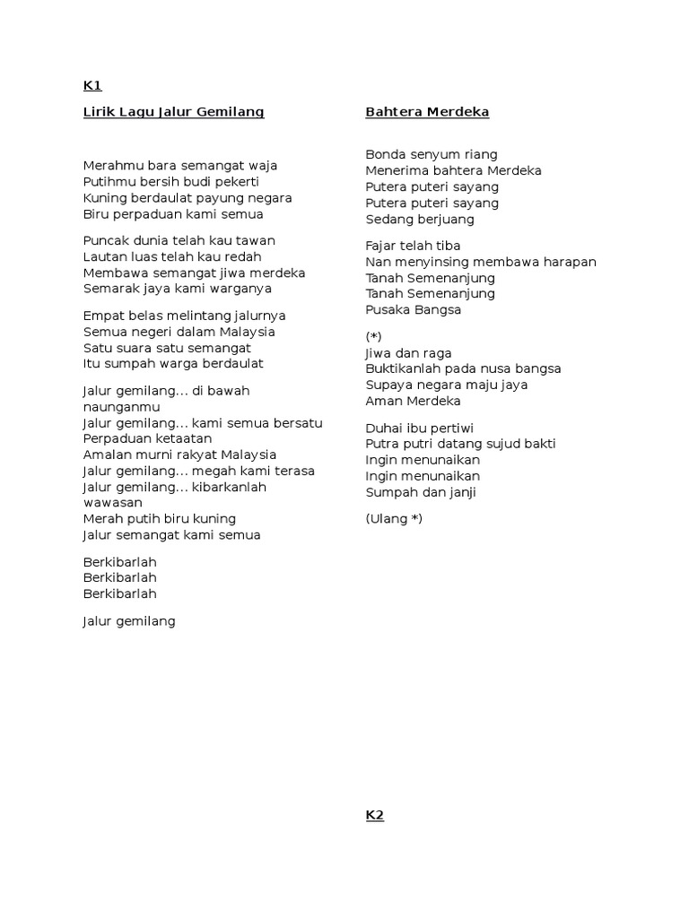 Bahtera Merdeka Lirik Lagu 1 Malaysia Koir Pelajar
