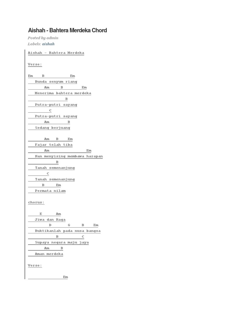 Aishah Bahtera Merdeka Chord