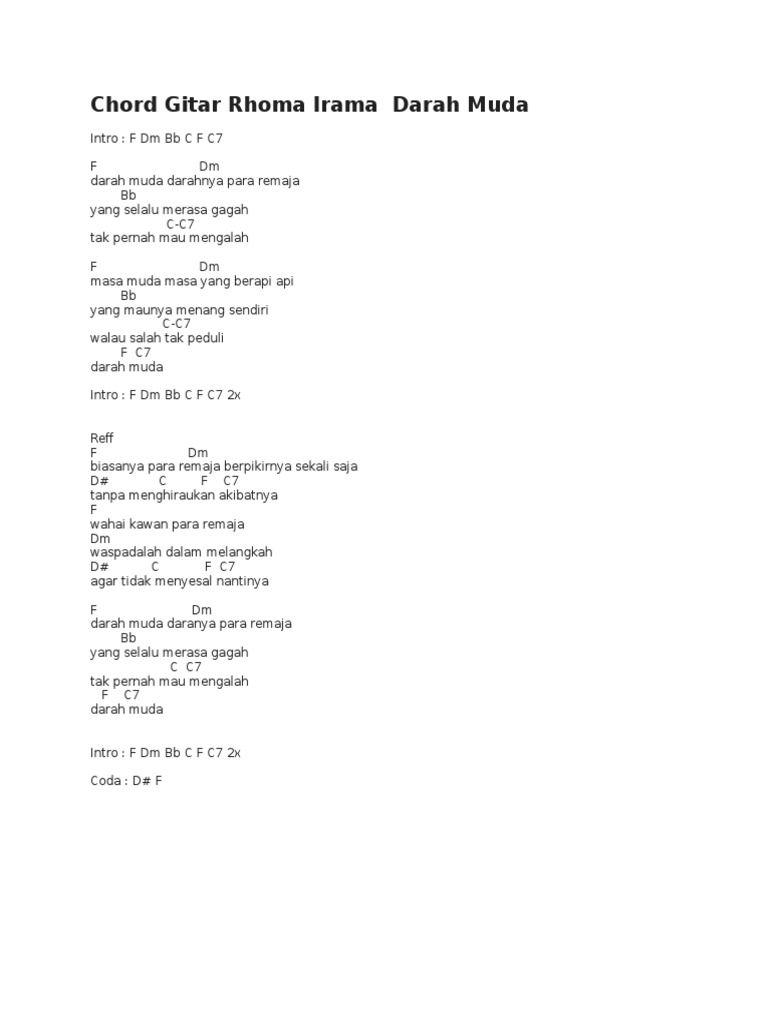 Rhoma Irama Darah Muda Chord Kunci Gitar Lirik Chord Gitar Online