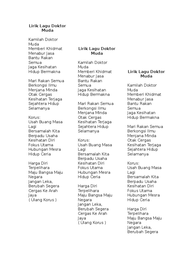 Lirik Lagu Dan Ikrar Doktor Muda Docx