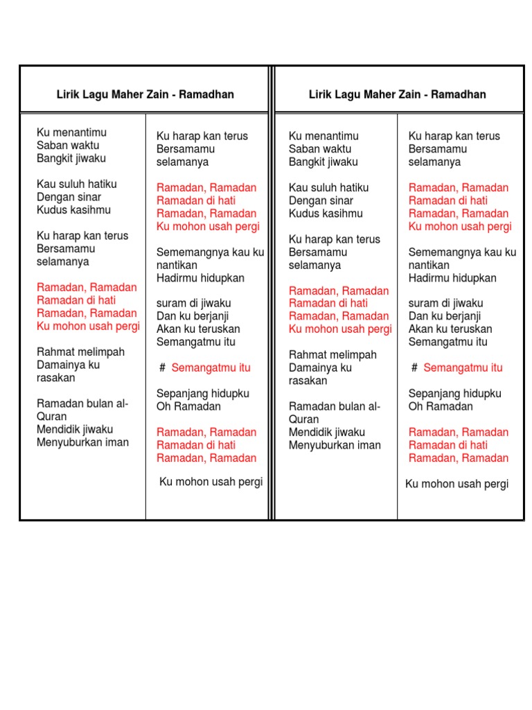Lirik Lagu Ramadhan Maher Zain Indonesia