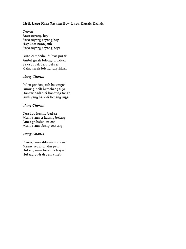 Lirik Lagu Rasa Sayang Hey