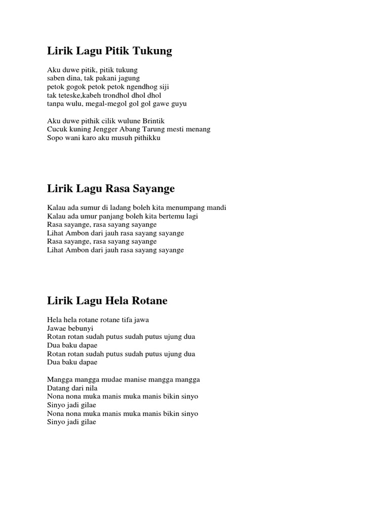 Lirik Lagu Rasa Sayange Lirik Lagu Dunia