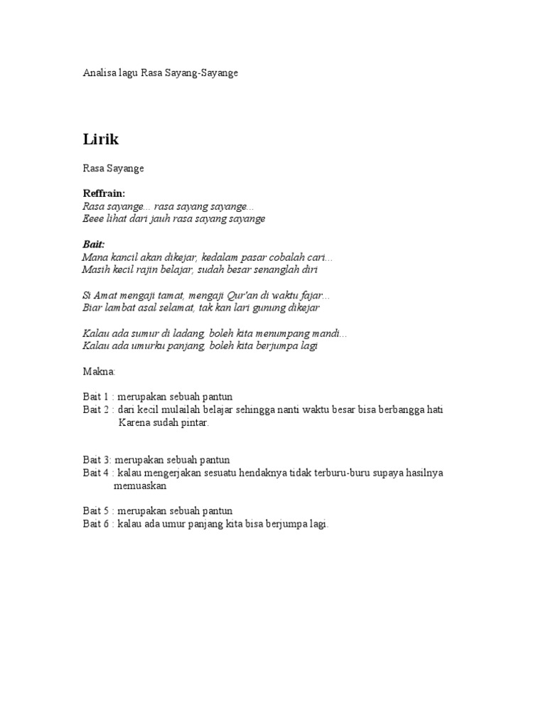 Kumpulan Artikel Bermanfaat Dan Ilmu Pengetahuan Lirik Lagu Rasa Sayange Asli