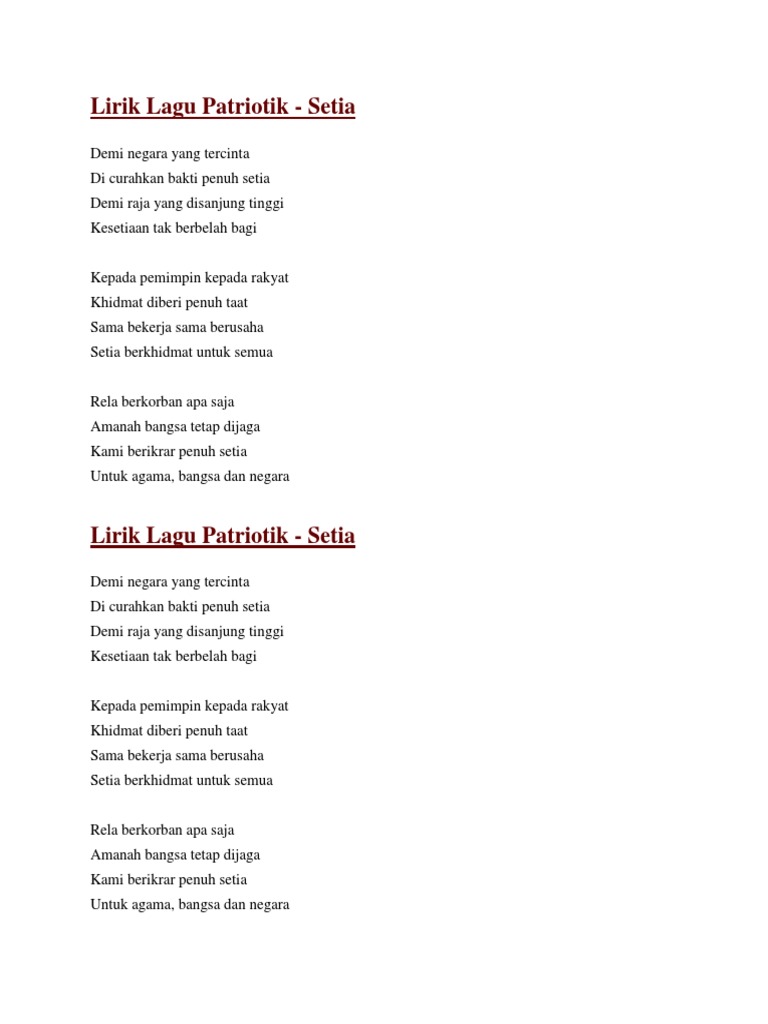 Lirik Lagu Setia Demi Negara Yang Tercinta Doc Docx