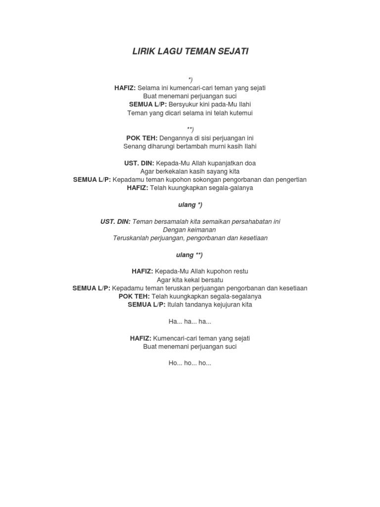 Lirik Lagu Teman Sejati Buat Menemani Perjuangan Suci Teman Yang Dicari Selama Ini Telah Kutemui