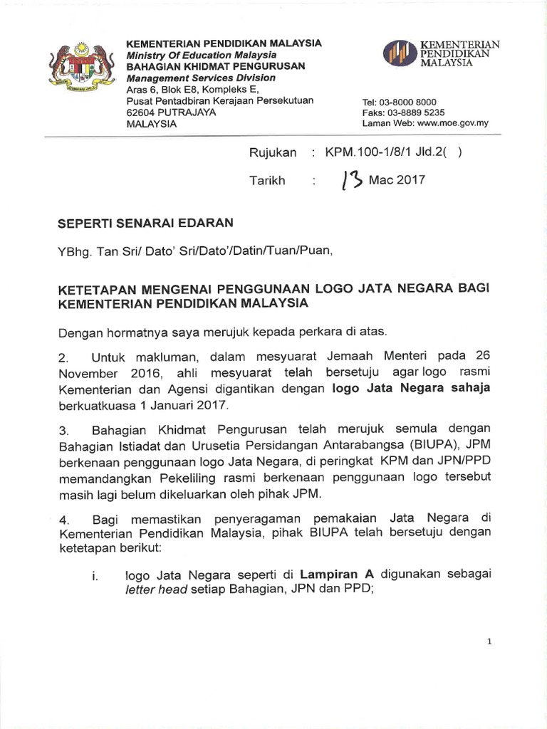 Ketetapan Mengenai Penggunaan Logo Jata Negara Bagi Kementerian Pendidikan Malaysia 2017 1489370039023 Pdf