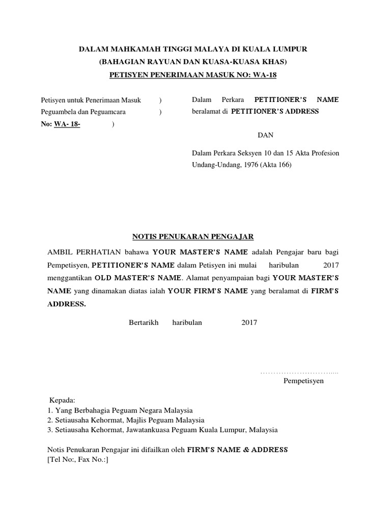 Mahkamah tinggi kuala lumpur ncvc 2 ya dato nik hasmat binti nik mohamad. Dan dalam perkara mengenai seksyen 27 akta timbangtara 1952 revised. Surat kuasa wakil kuasa mati. Kompleks mahkamah kuala lumpur.