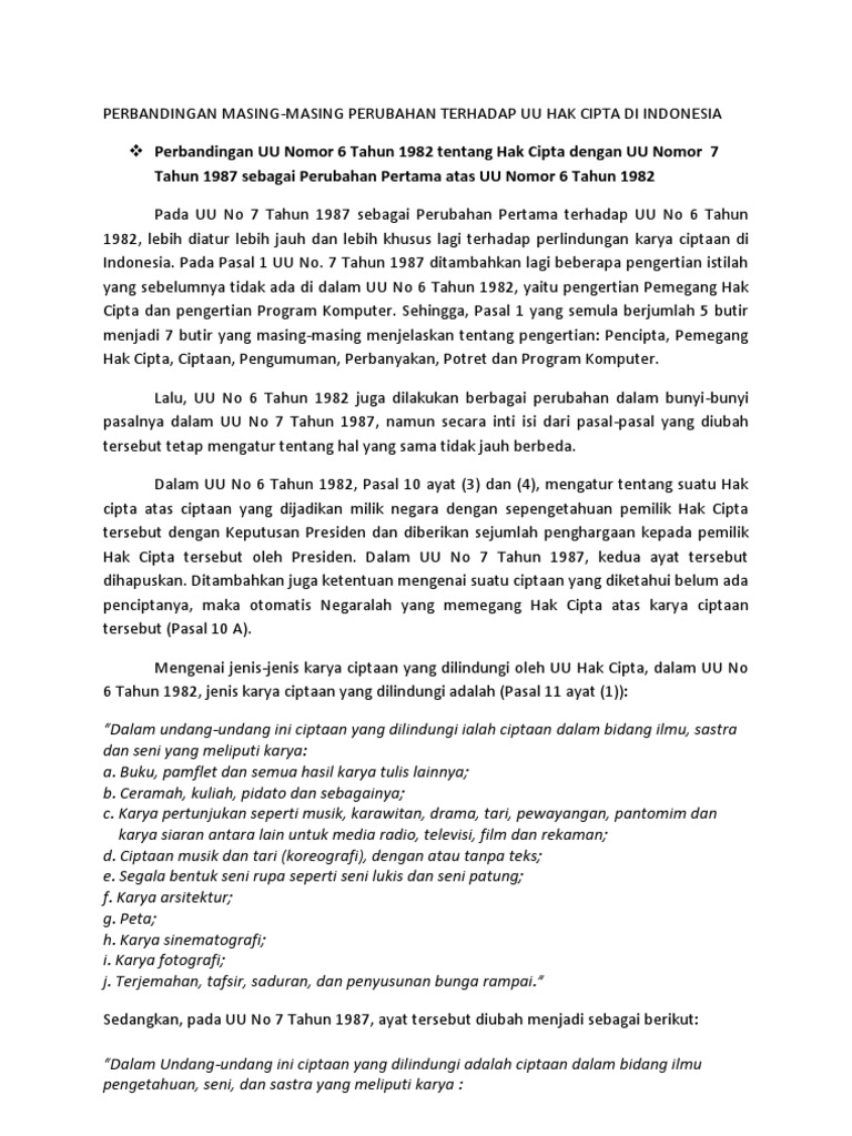 Perbandingan Terhadap Uu Hak Cipta Di Indonesia