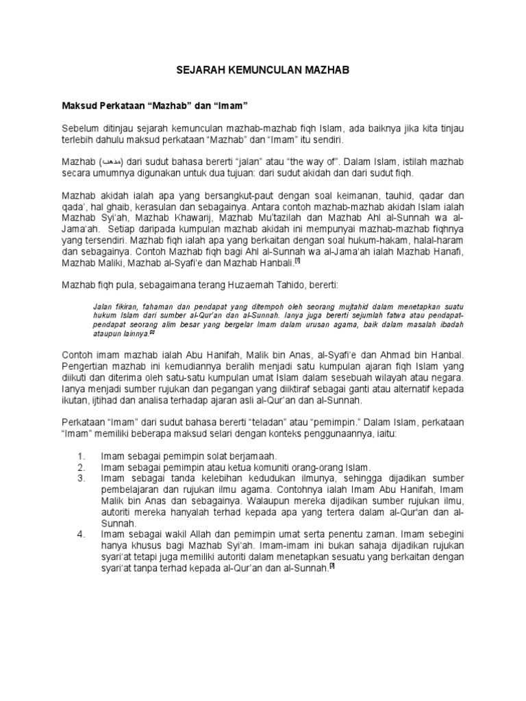 Sejarah Kemunculan Mazhab Maksud Perkataan Mazhab Dan Imam