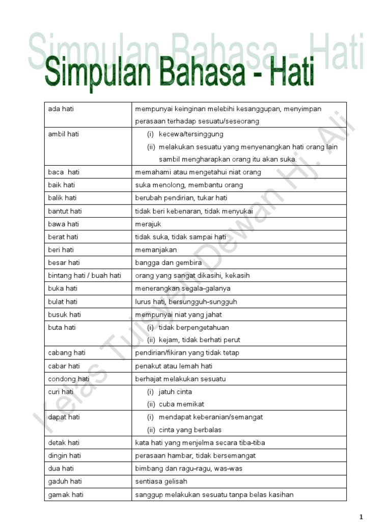Maksud peribahasa besar hati. Murid murid dapat mencari maksud peribahasa dan makna ayat tertentu termasuk simpulan bahasa perumpamaan bidalan pepatah dan sebagainya di jadual. Jika ia kalah akan didapati orang yang putus asa sesat lemah hati kecil perasaan dan bahkan kadang kadang hilang kepercayaan pada diri sendiri. Kata bijak terpopular berat hati. Orang yang mendapat kecelakaan atau binasa karena keunggulannya tabiatnya.