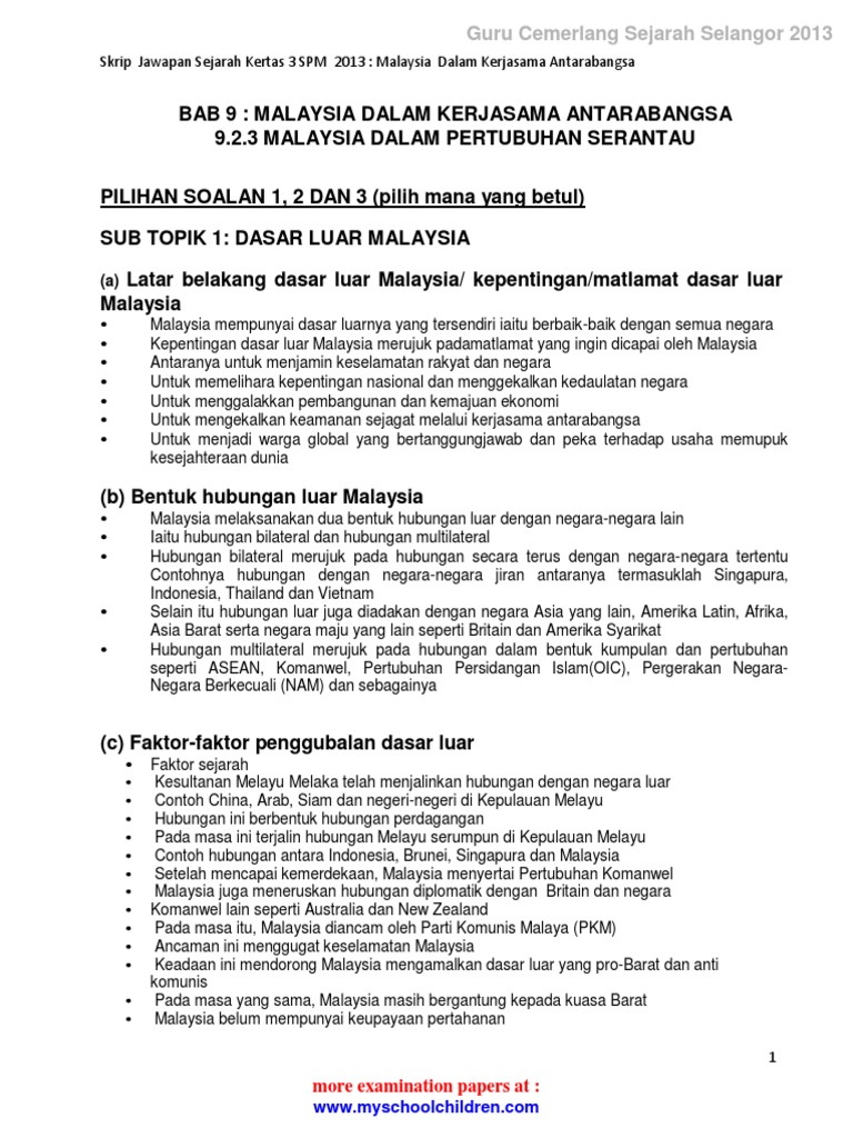 Malaysia Dan Kerjasama Antarabangsa Kertas 3