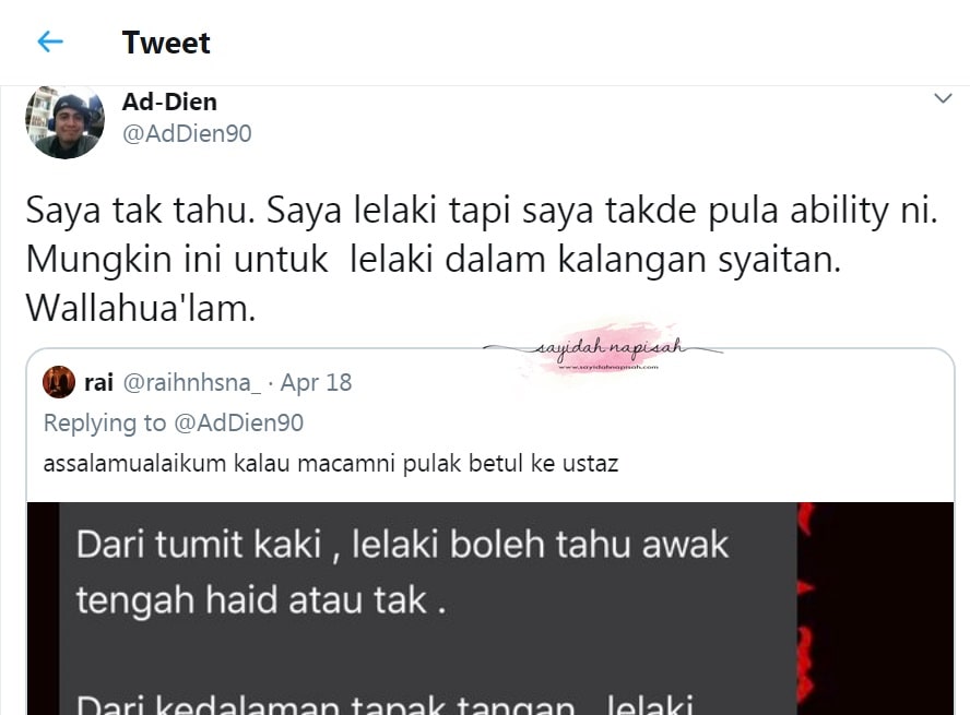 Dari Tumit Kaki Lelaki Boleh Tahu Awak Tengah Haid Atau Tak Sayidahnapisahdotcom