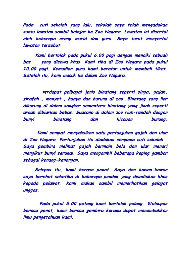 Contoh Karangan Pengalaman Ke Zoo Negara Contoh Qi