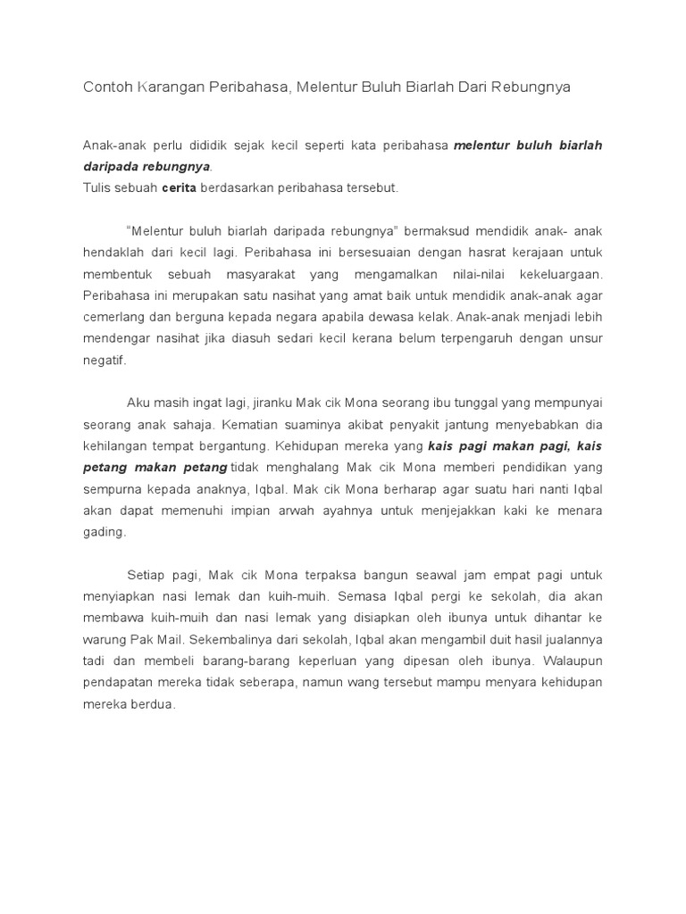 Contoh Karangan Peribahasa Melentur Buluh Biarlah Dari Rebungnya