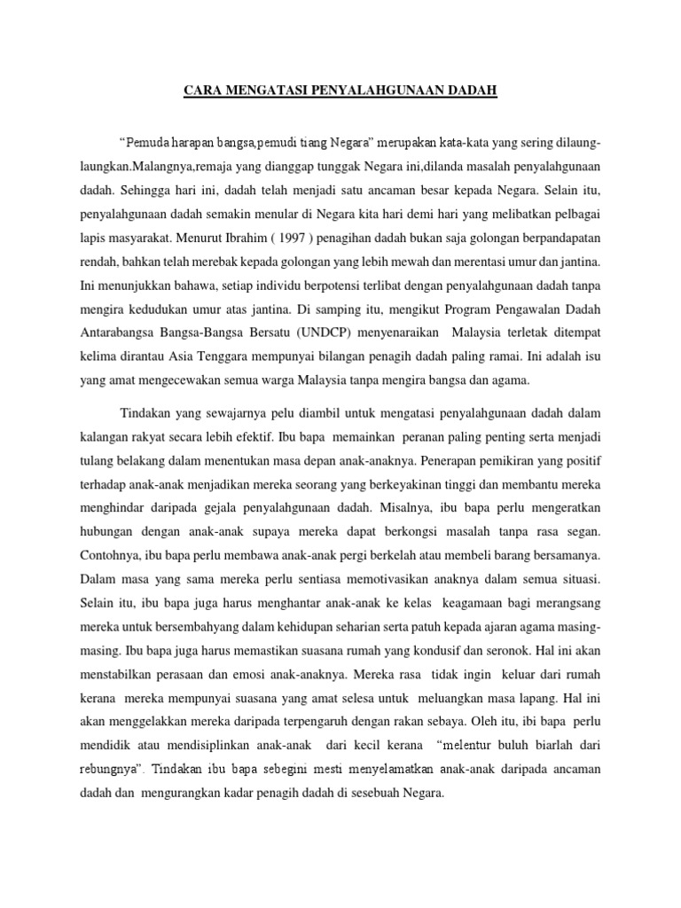 Karangan Cara Cara Mengatasi Masalah Penyalahgunaan Dadah