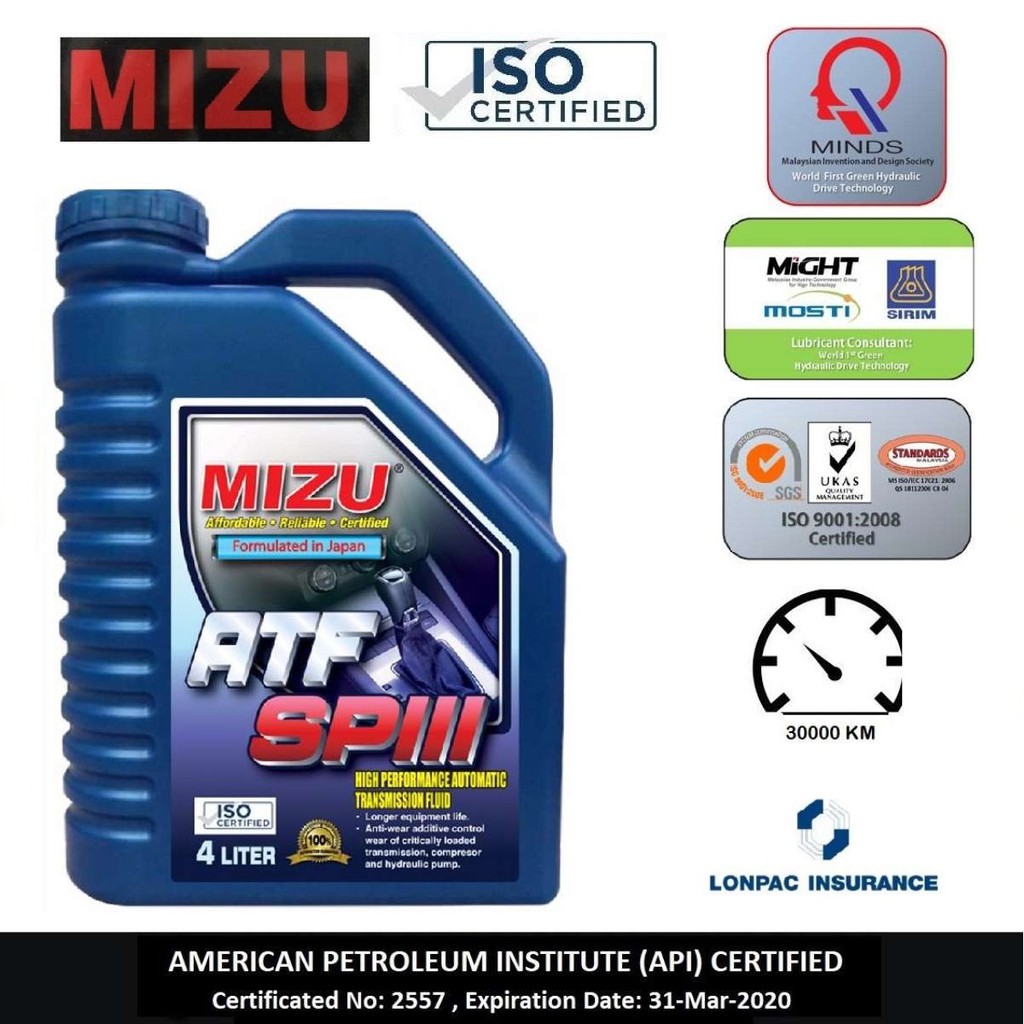 Mizu Atf Sp3 Fully Synthetic Minyak Gear Iso Certified Shopee Malaysia