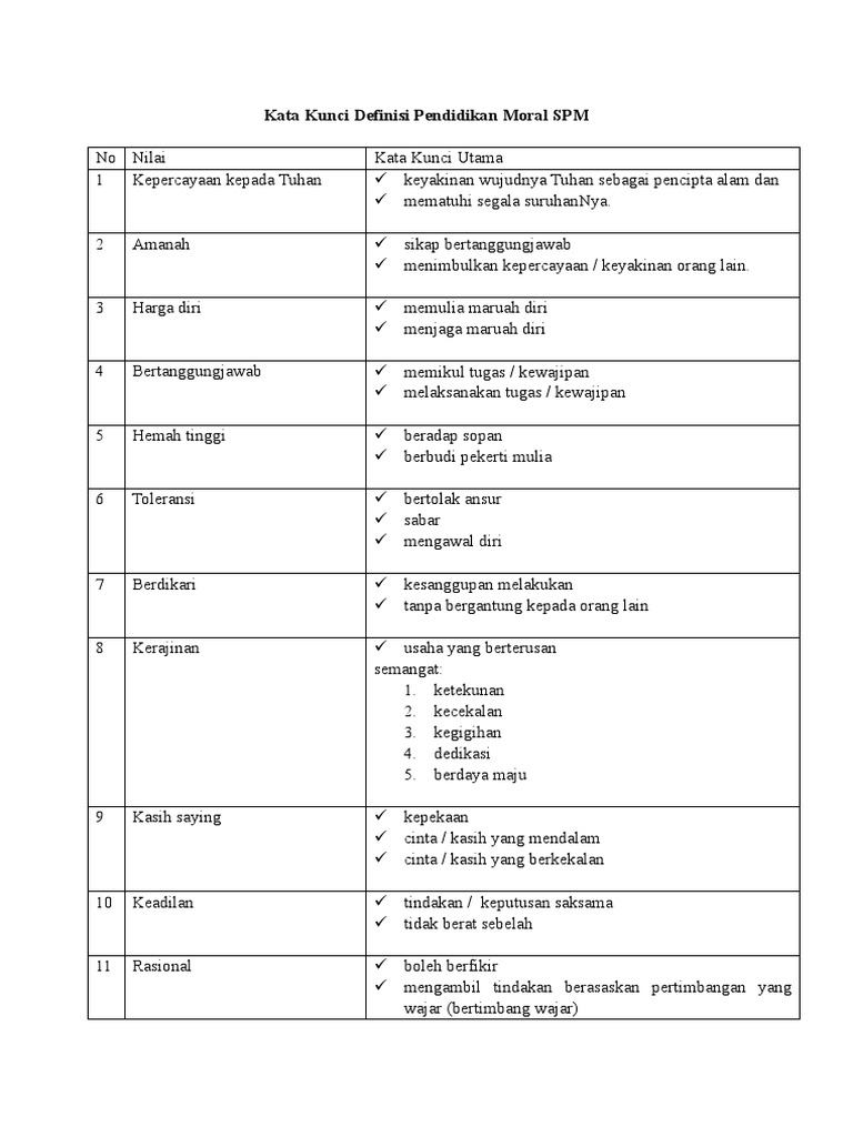 Nilai Definisi Kata Kunci Pendidikan Moral Tingkatan 4